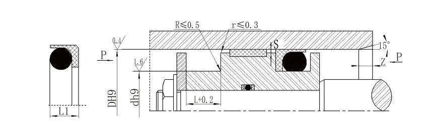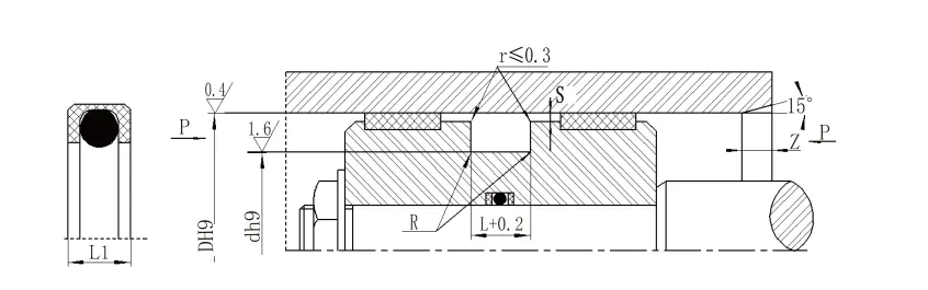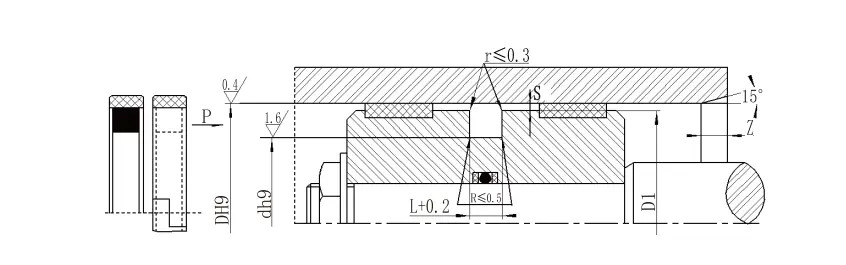 | ລະດັບ Aperture d h9 | ເສັ້ນຜ່າສູນກາງຮ່ອງ d h9 | ຄວາມກວ້າງຂອງຮ່ອງ l+0.2 | ປະທັບຕາຄວາມສູງ l1 | ມຸມກົມ RMAX | ການເກັບກູ້ Radial sສູງສຸດທີ່ເຄຍ | ພົມ zນາວາ | ເສັ້ນຜ່າສູນກາງສາຍ O-ring dO | |